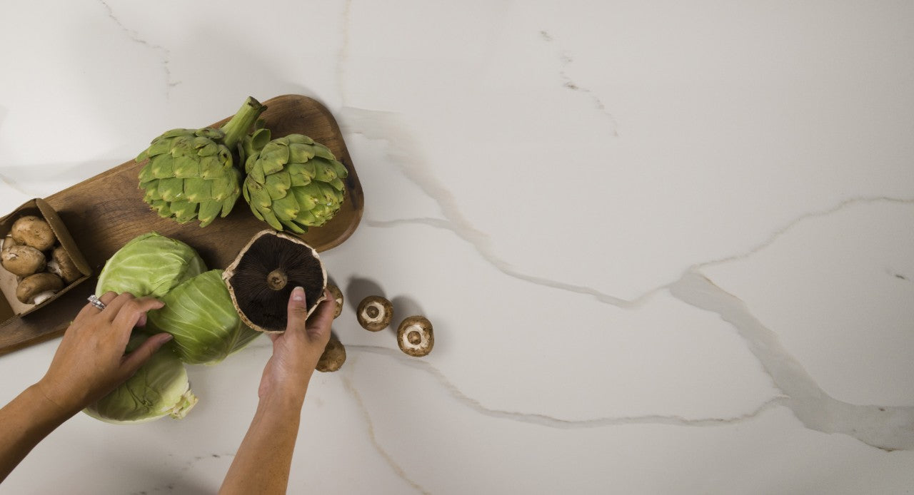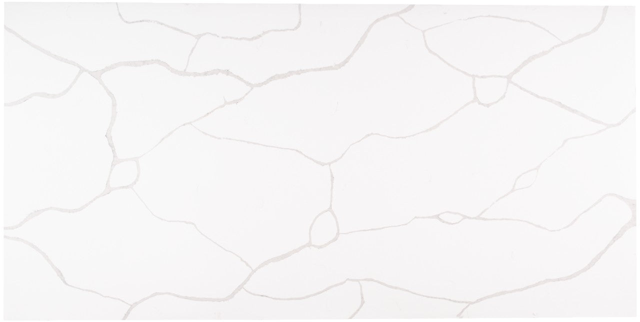 Exquisite and unique, Calacatta Classique Quartz stuns the senses with its clean whites and striking through-body marble look veining. Perfect for creating show-stopping white quartz countertops and waterfall islands in kitchens, backsplashes, showers, and floors in both residential and commercial environments, this lovely neutral quartz won't let you down. Carrara Quarts are available in 2 cm and 3 cm slabs and prefabricated quartz options. Get the look of luxurious marble in this durable and maintenance-free quartz.