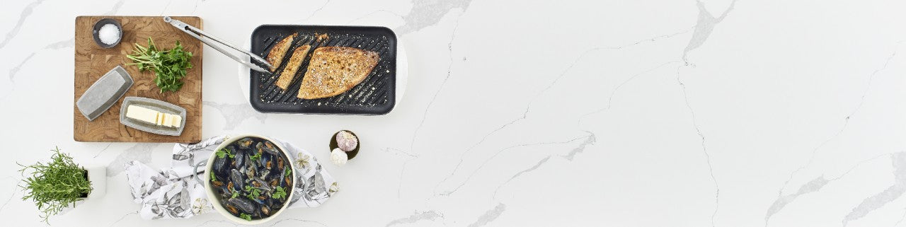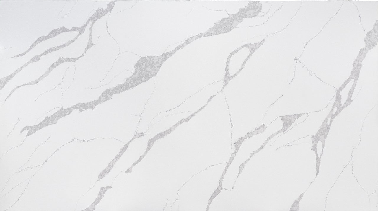Calacatta Leon is a statement-making quartz designers just can't get enough of. Its soft white backdrop is enhanced with dramatic grey veining throughout the slab for the most authentic marble look. This envy-inducing quartz gives your kitchen, bath, or other space a signature look, whether used for white quartz countertops, floors, waterfall islands, backsplashes, or accent walls. Durable, low-maintenance, and stain- and germ-resistant, it is easy to see why quartz countertops are a top choice for both homeowners and homebuyers.