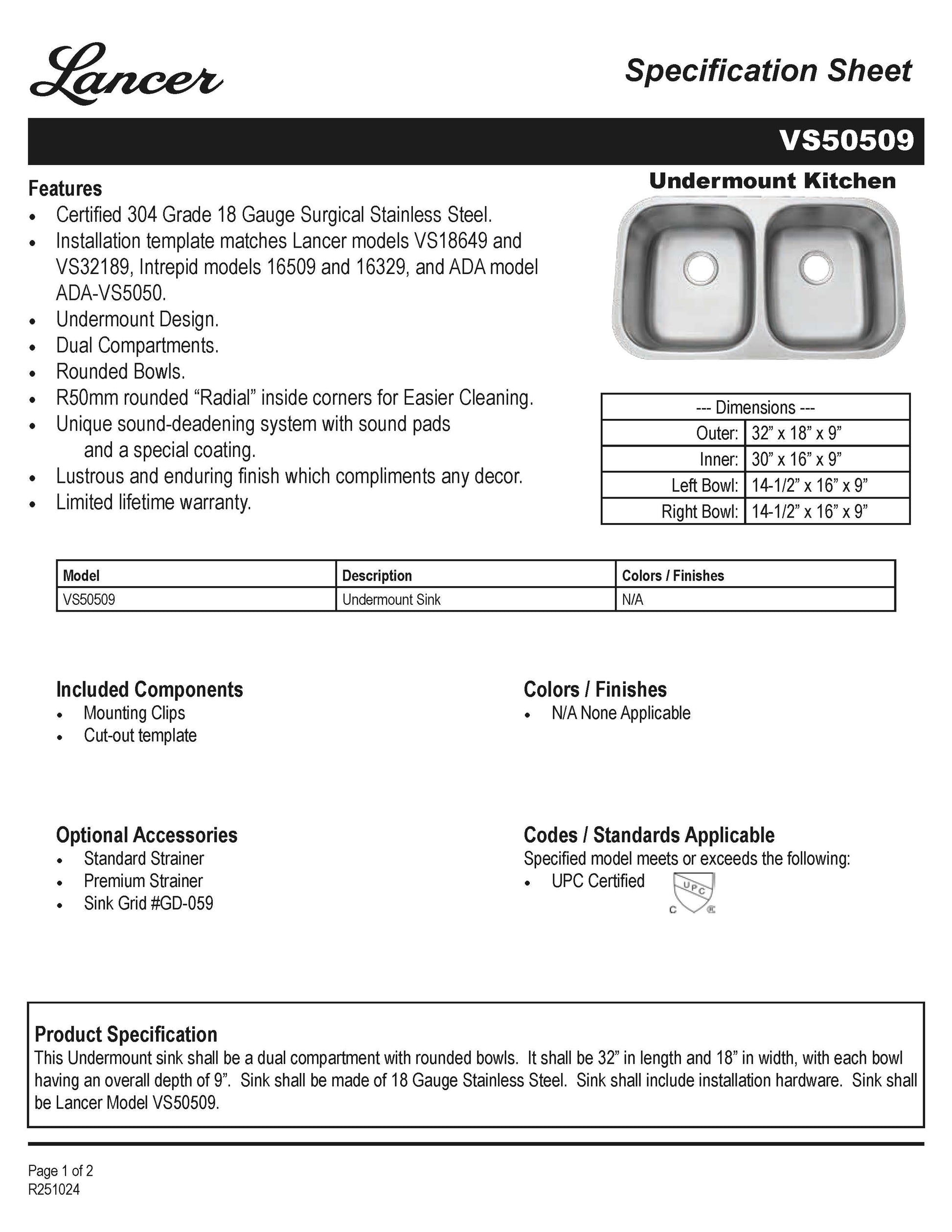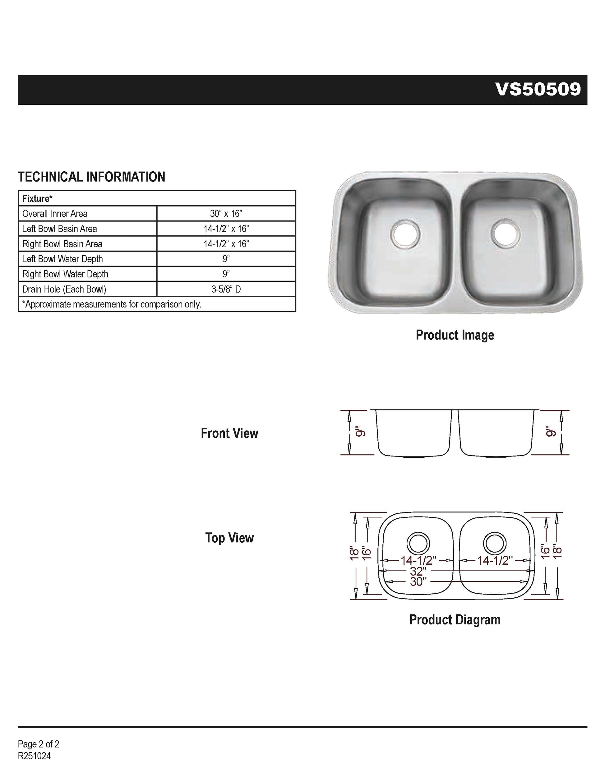 Double Bowl 50/50 - Stainless Steel - VS50509 Specifications